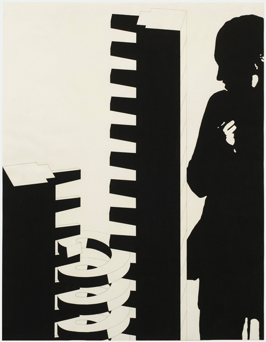 Les dessins présentent une figuration exagérée de la lumière avec des ombres franches et une forte saturation des zones éclairées. La visualisation des façades en silhouettes y provoque un déséquilibre visuel de l'agencement. Les espaces architecturaux et la place que peut y occuper l’œuvre d’art y sont fictifs mais plausibles.