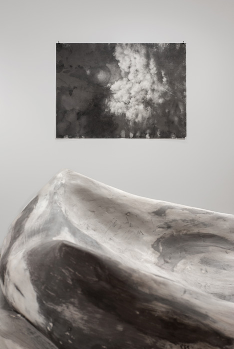 Les dessins de Mélissande Herdier nous montrent des nuées, mais aussi autant d’amas ou d’agrégats d’astres. La technique de bains et de dépôts successifs de poudre de graphite employée pour les réaliser renvoie à l’émulsion photographique argentique. Les dessins se font chambre noire, ils sont le lieu d’une captation et d’une révélation sensible de fictions d’espaces et d’entremêlement de l’artificiel et du naturel.