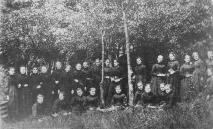 La figure féminine s’élance depuis le tronc d’un pas déterminé. Ses vêtements et sa coupe courte incarnent la modernité. Elle est personnifiée - à l’inverse du tronc d’homme, allégorique. Cette figure a cependant aussi toute sa part de symbolique : elle pourrait incarner toutes les femmes formées dans cette École Normale, ou encore de manière plus générale, la mise en mouvement de l’éducation des femmes depuis le XIXᵉ siècle — rappelons que la première école professionnelle pour jeunes filles date de 1862. Elle s'inscrit ainsi dans un contexte historique et social chargé, faisant écho à l'histoire de l'éducation, de l'émancipation des femmes et de l'évolution de nos valeurs sociétales.