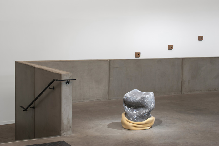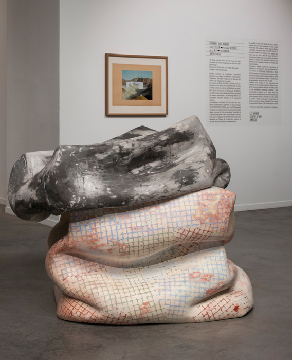 Au premier plan : Chambre avec nuages, ébouli, Pierre Feller, à l'arrière plan : Toucher pied avec les yeux, Axelle Glé